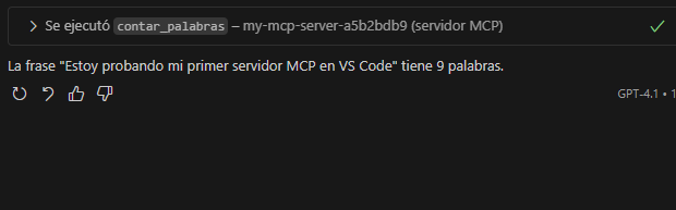 ¿Cuántas palabras hay en esta frase: "Estoy probando mi primer servidor MCP en VS Code"?Lo que debería pasar: