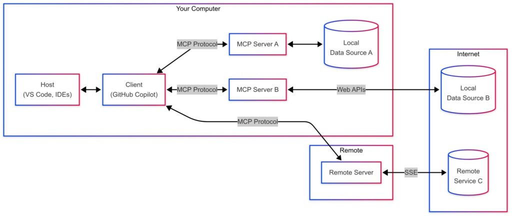 - MCP Client: El LLM (como Copilot) que descubre y llama a las herramientas.